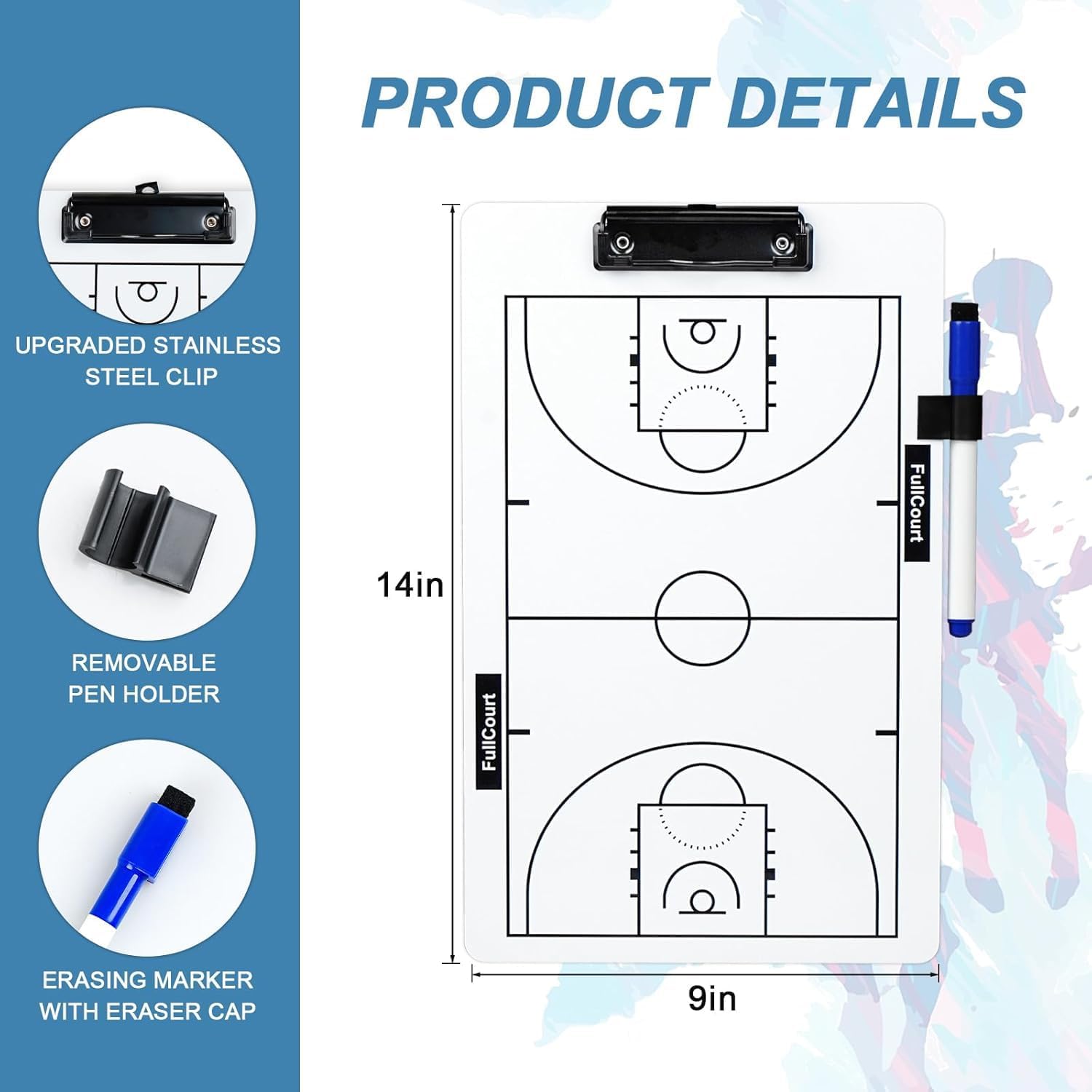 مجموعه کامل با خودکار نشانگر: این کلیپ بورد با یک خودکار نشانگر اختصاصی برای راحتی ارائه می شود. با ترسیم بازیها و به اشتراکگذاری بینشها با تیم خود، سازماندهی شده و روی زمین تمرکز کنید.