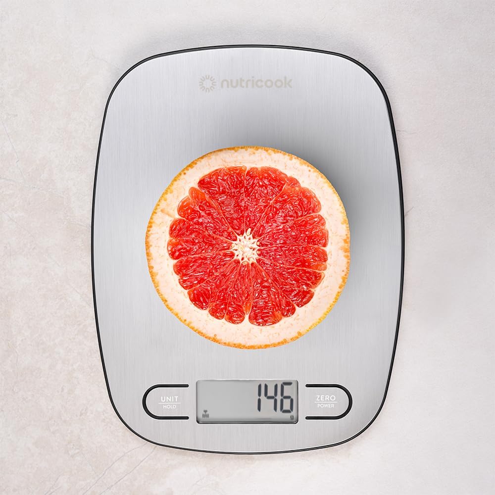 ترازوی آشپزخانه دیجیتال Nutricook Eko، ظرفیت 5 کیلوگرم، ترازو غذای فولادی ضد زنگ برای پخت و پز – 4 سنسور وزن، تار/صفر، عملکرد خاموش شدن خودکار و کالیبره خودکار، 2 سال گارانتی