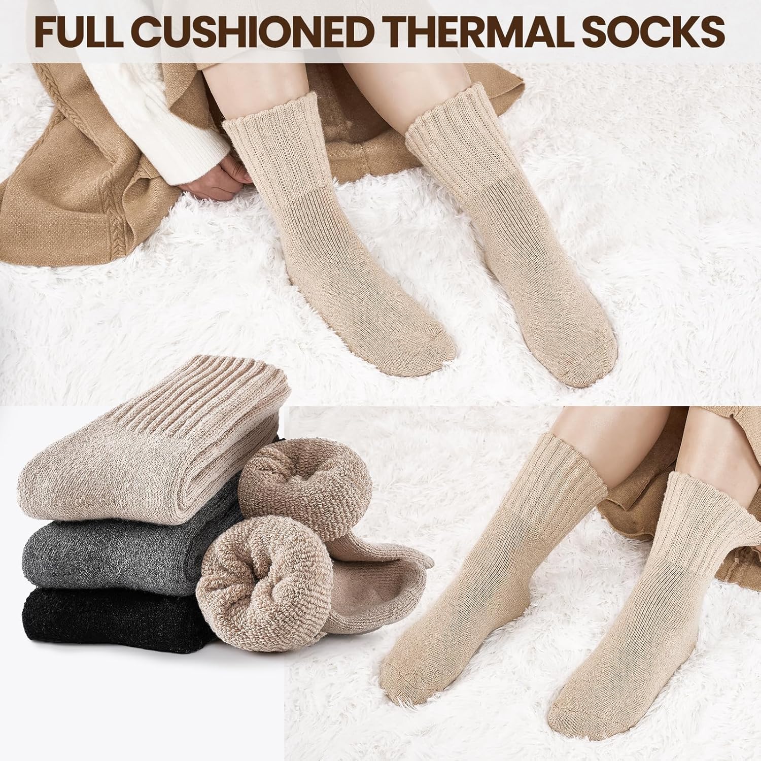 جوراب پشمی گرم برای زنان، 3 جفت جوراب زمستانی حرارتی ضخیم کامل بافته شده جوراب پشمی خدمه زمستانی، هدیه ای دنج