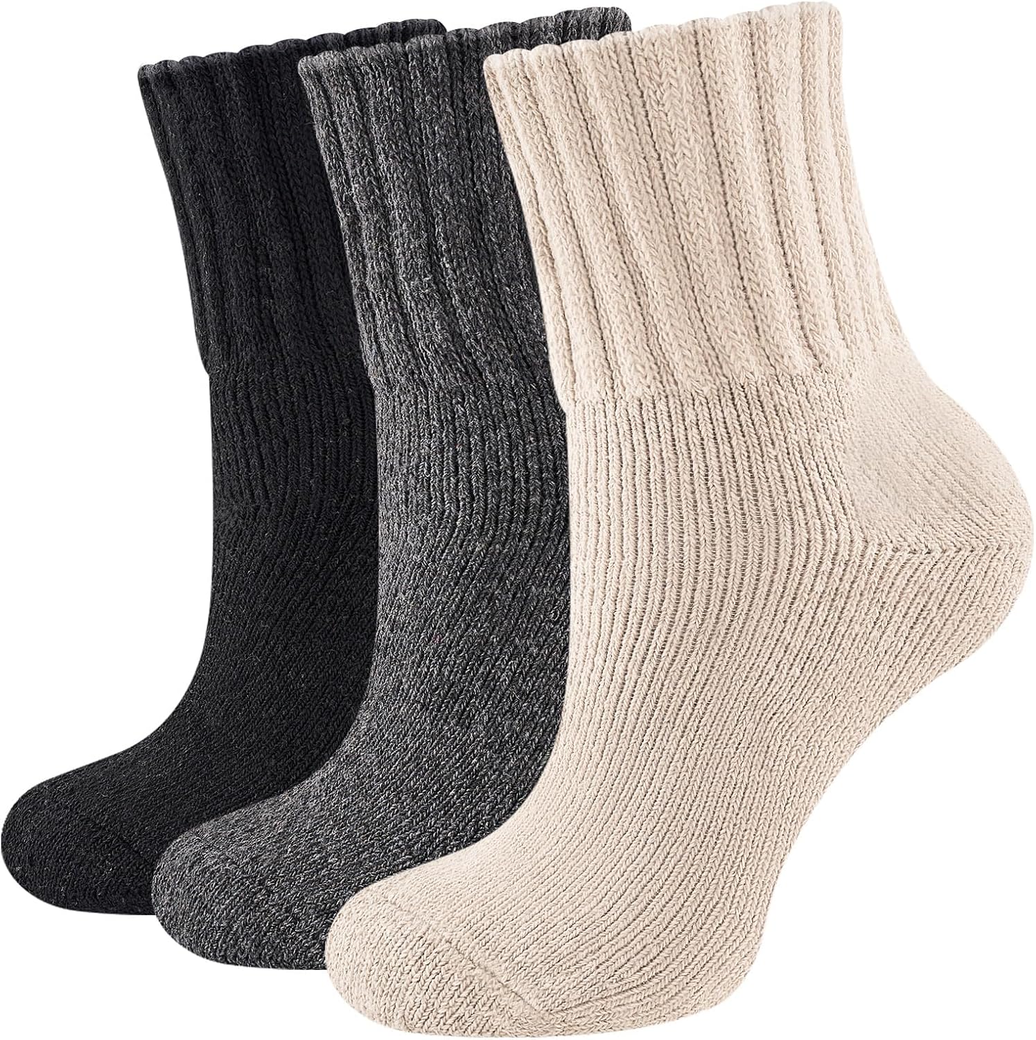 جوراب پشمی گرم برای زنان، 3 جفت جوراب زمستانی حرارتی ضخیم کامل بافته شده جوراب پشمی خدمه زمستانی، هدیه ای دنج عدد