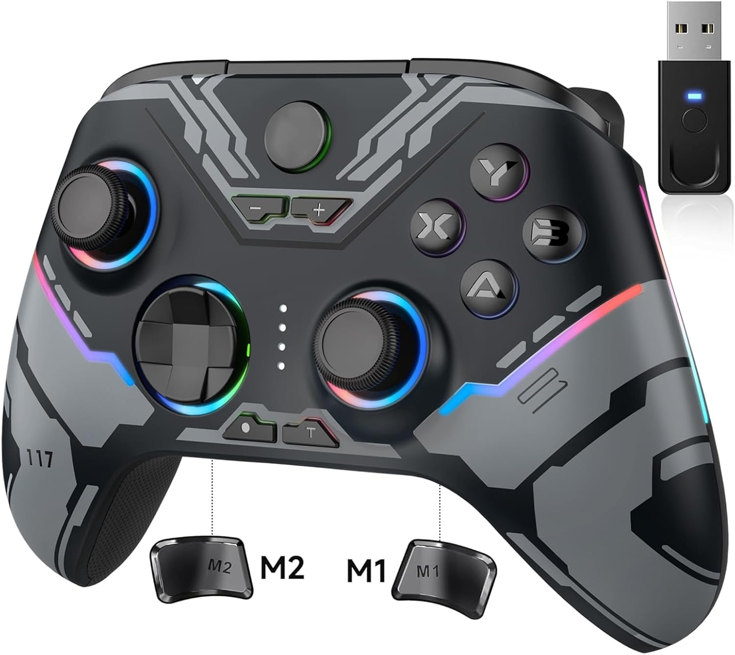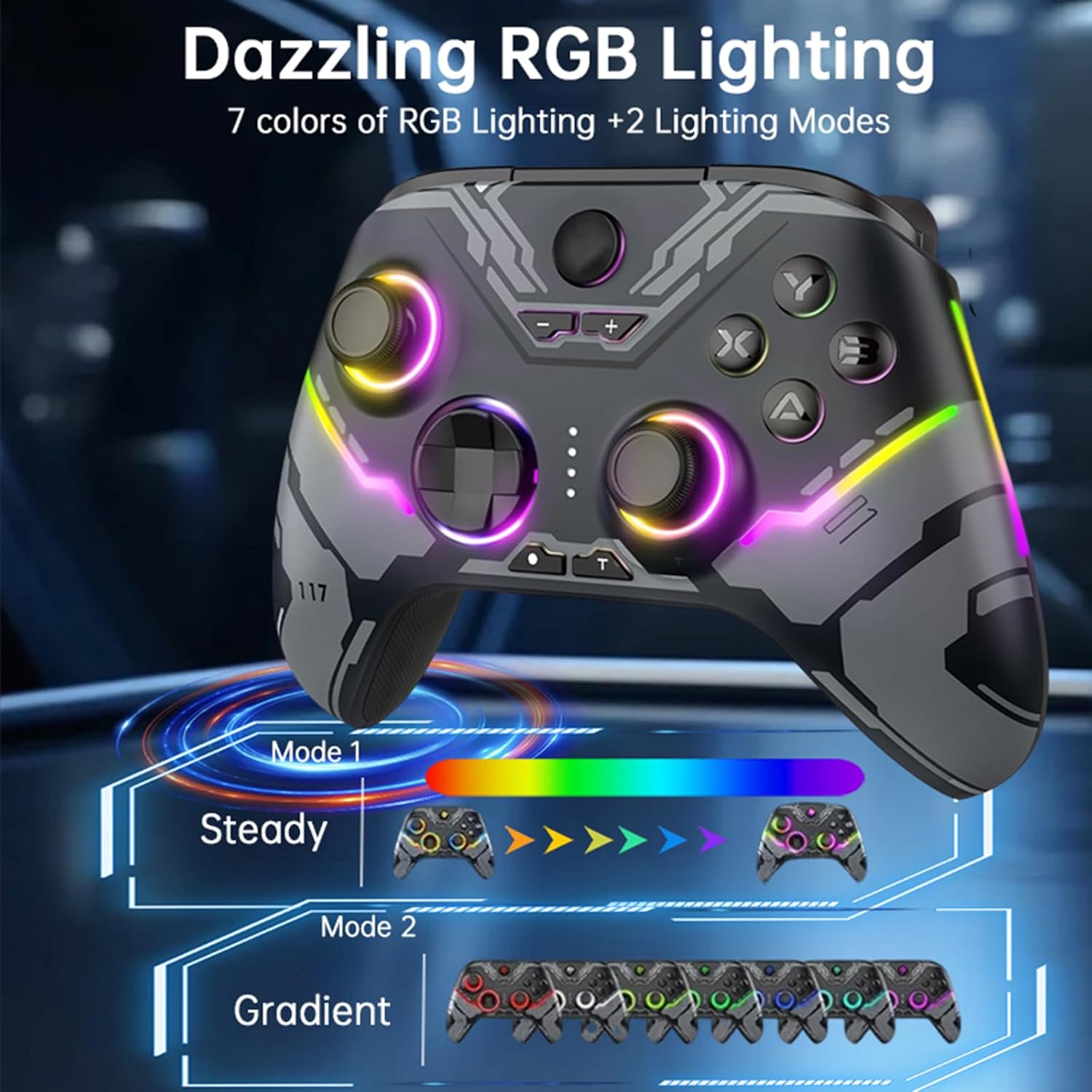 جوی استیک کامپیوتر SPNOR Gamepad با تریگرهای هال جوی استیک جلوه هال/ محرک رزونانس خطی/روشنایی RGB – بدون استیک دریفت، بدون منطقه مرده – کار برای رایانه های شخصی ویندوز، اندروید، استیم و سوئیچ