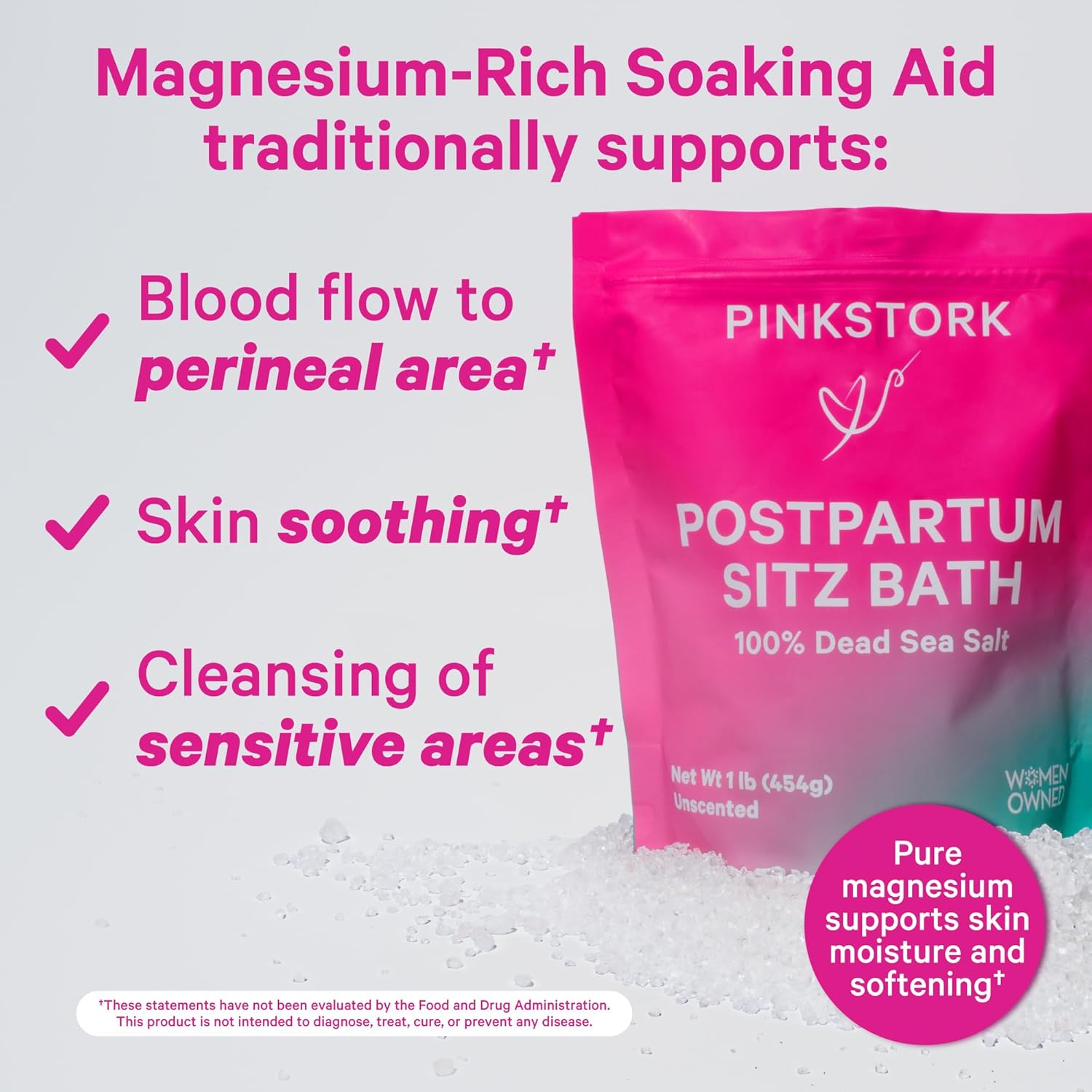 نمک دریای مرده برای مراقبت و پاکسازی پرینه، ریکاوری پس از زایمان، ضروریات زایمان و زایمان، متعلق به زنان، بدون بو، 16 اونس (454 گرم)