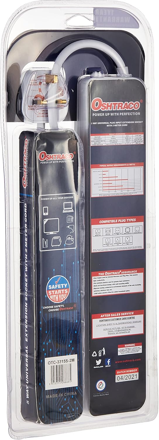 سوکت اکستنشن جهانی 5 راهه Oshtraco OTC3315S-2M با سیم 2 متری