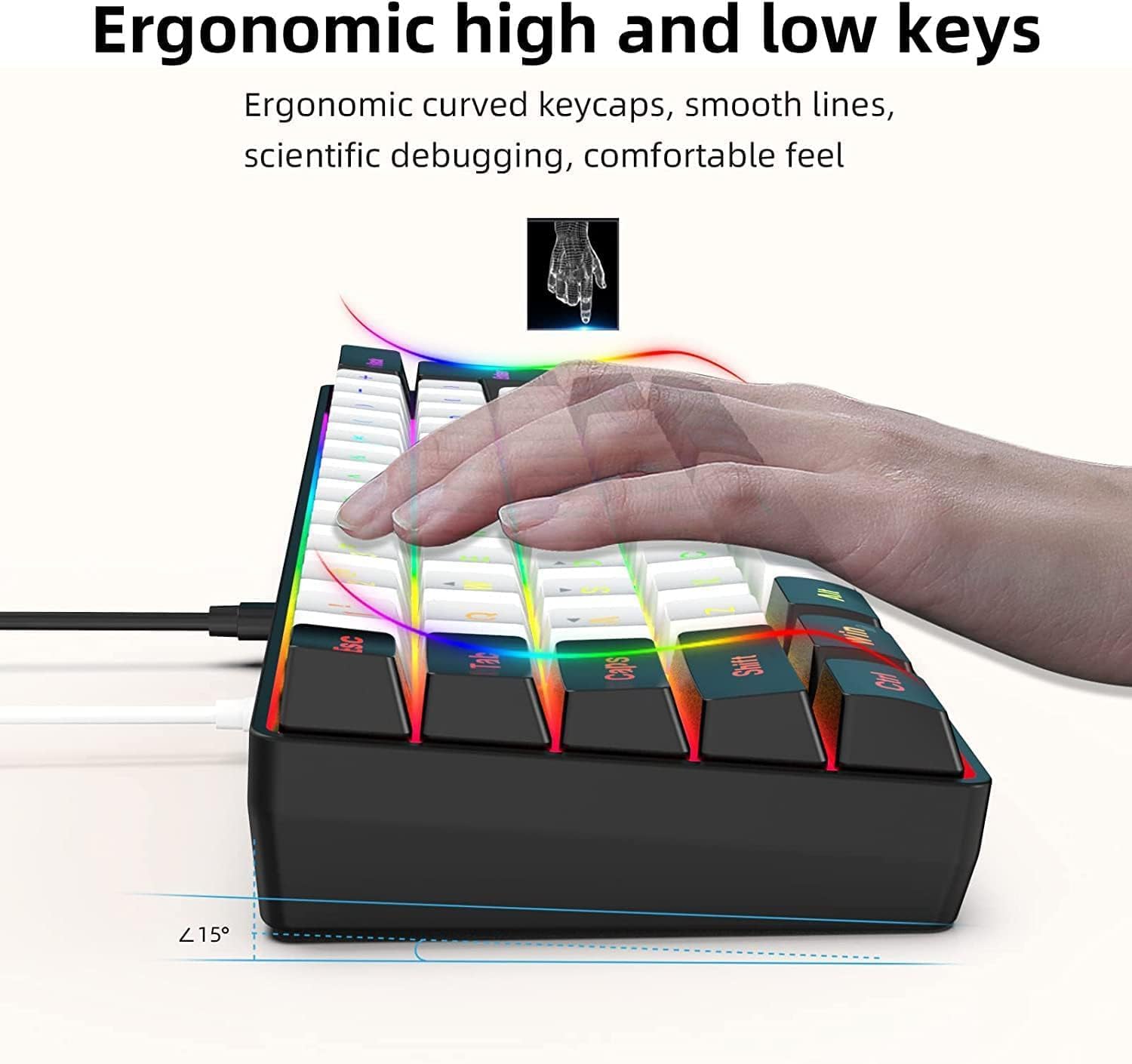 صفحه کلید بازی سیمی ROCK POW 60٪، صفحه کلید مینی فوق فشرده با نور پس زمینه RGB، صفحه کلید کوچک جمع و جور ضد آب با 61 کلید برای PC/Mac Gamer، تایپیست، مسافرت، حمل آسان در سفر کاری (سیاه-سفید)
