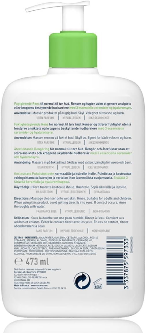 پاک کننده آبرسان Cerave برای پوست های نرمال تا خشک با اسید هیالورونیک عدد