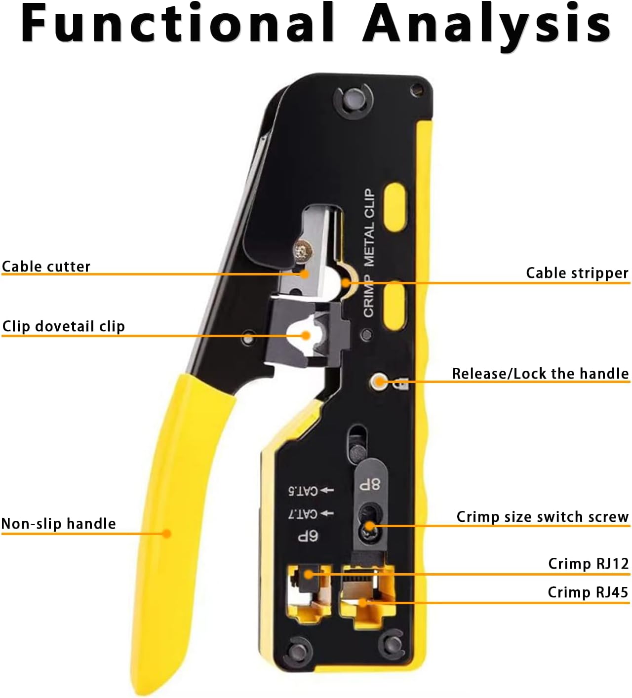 【کرمپر تیز و منظم】: با چینکنندهای که با طراحی ماهرانه طراحی شدهایم، کابل بدون تاخیر را بهدست آورید. با دارا بودن یک دسته بلند برای استفاده بدون دردسر، به شما امکان می دهد کابل های شبکه را به طور موثرتر و با تلاش کمتر چروک کنید.