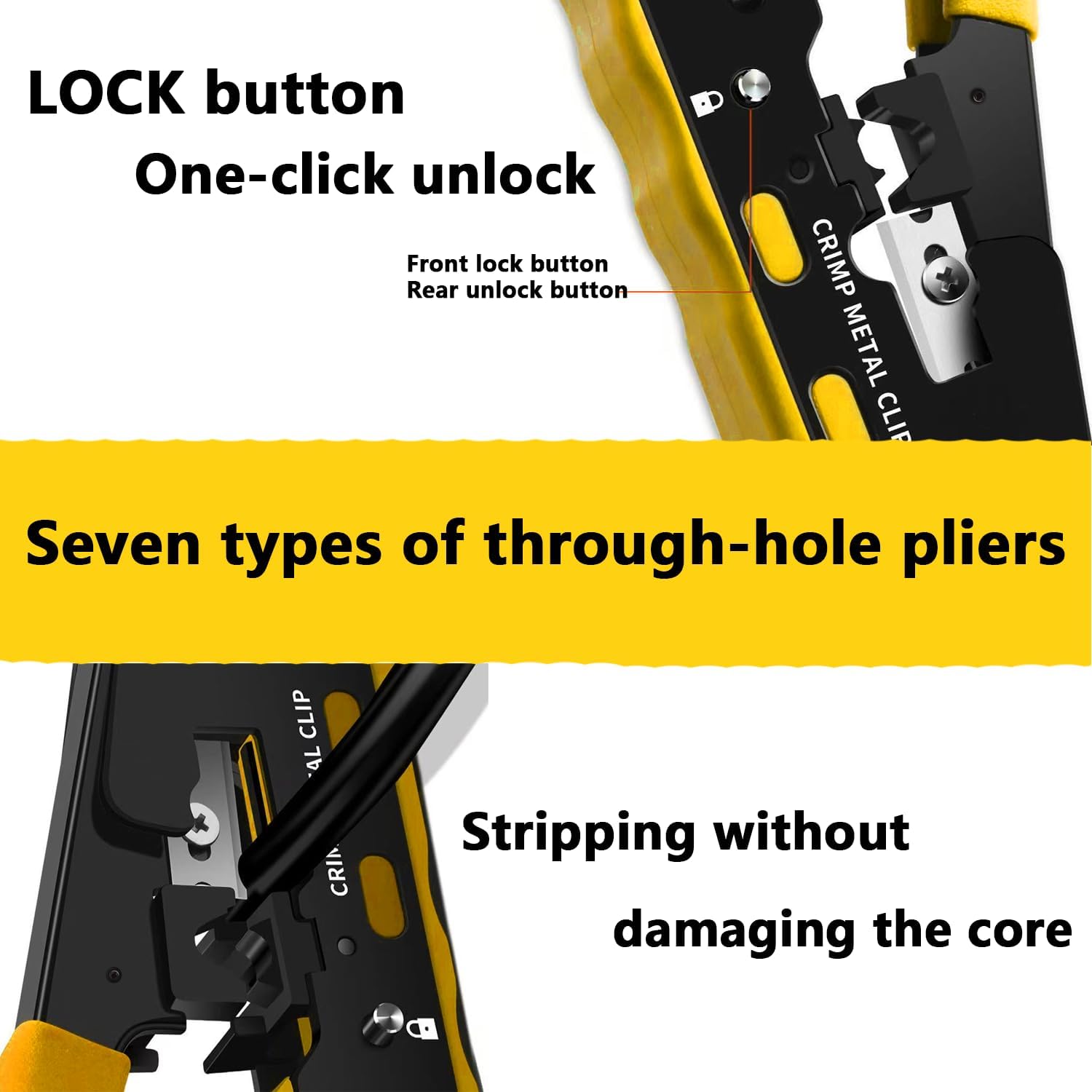 کیت ابزار گذرگاهی RJ45 – کابل شبکه WEETOTUNG برش دهنده همه کاره Crimper – سازگار با کانکتور Cat5/Cat5e/Cat6