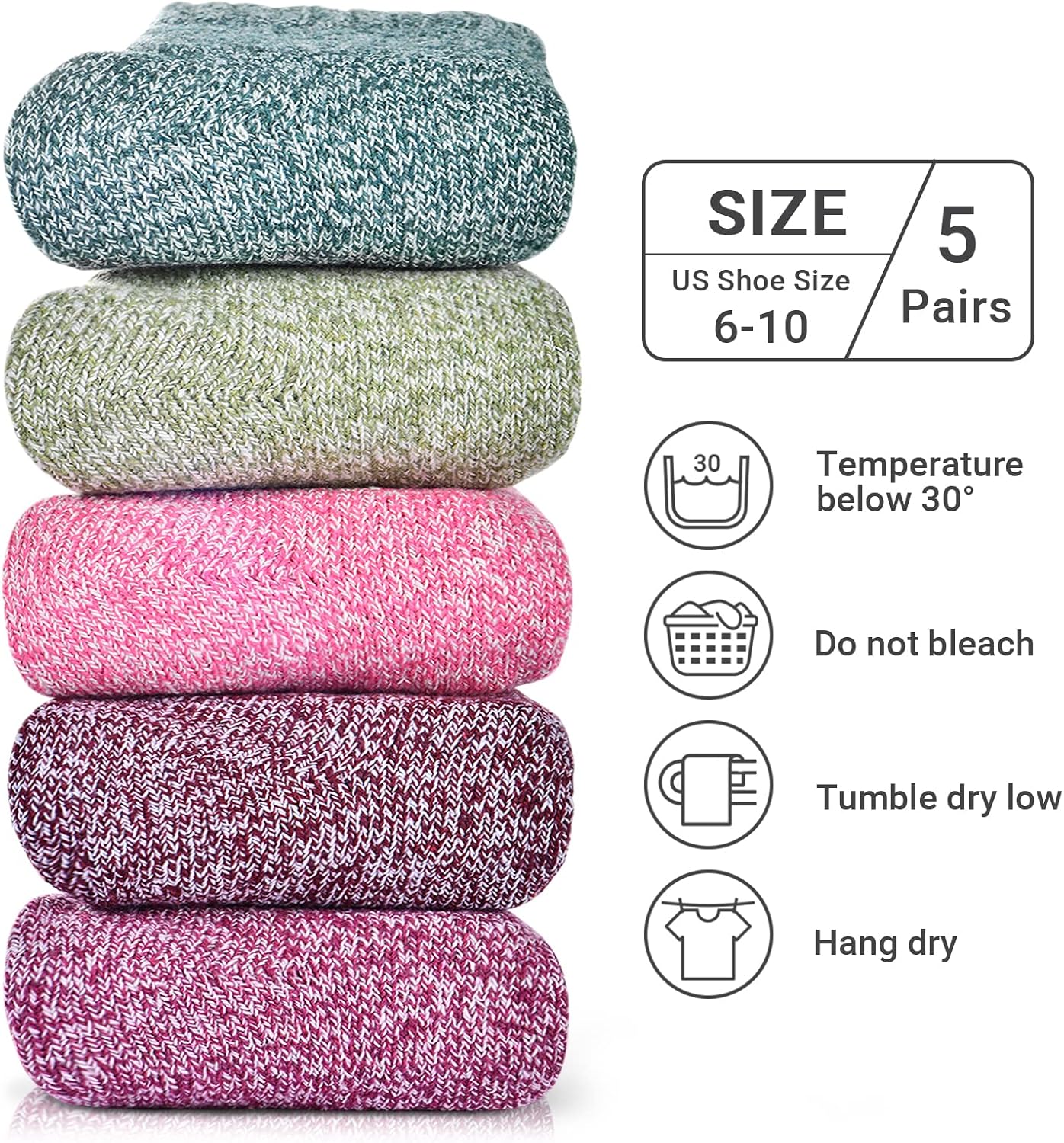 Clothclose 5 جفت جوراب پشمی – جوراب پشمی گرم برای زنان/مردان، جورابهای خدمه فوقالعاده نرم جوراب بوت، جورابهای ضخیم بافتنی راحت