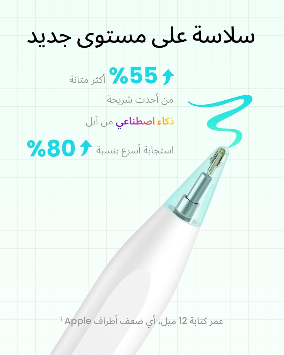 - سبک و راحت: فقط ۱۰ گرم وزن (۵۰٪ سبکتر از Apple Pencil نسل دوم)، با فناوری رد کف دست (palm rejection) برای استراحت طبیعی دست روی صفحه بدون اختلال.