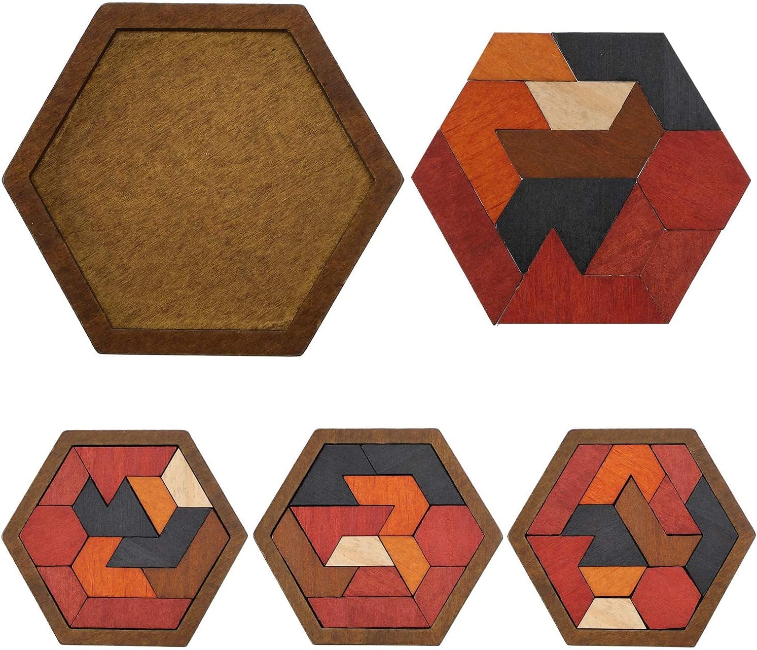 Mumoo Bear Hexagon Tangram پازل چوبی برای کودکان و بزرگسالان پازل های چالش برانگیز بازی فکری چوبی پازل برای بزرگسالان پازل بازی های خانوادگی پازل های قابل حمل بازی مغزی