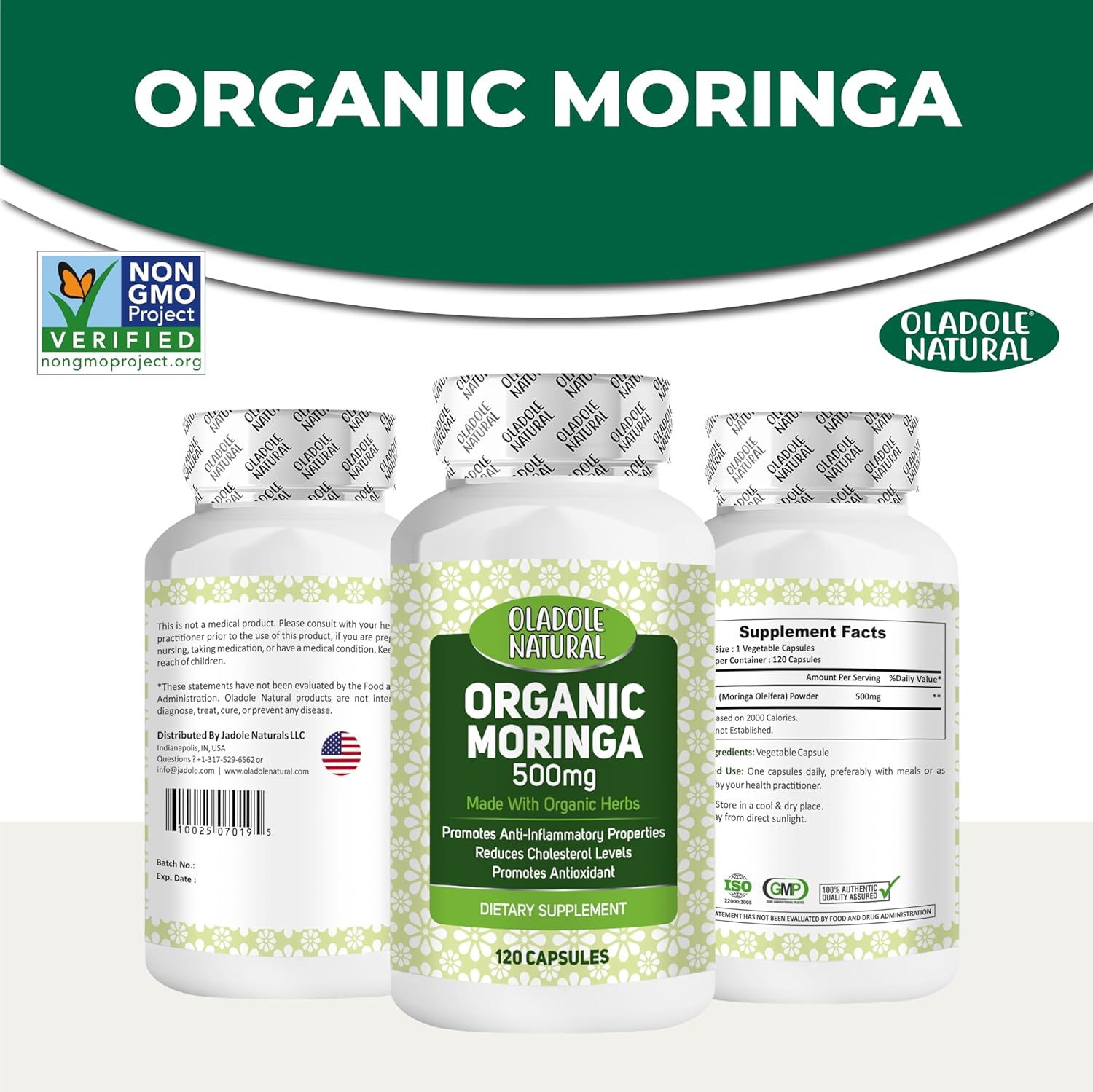 Oladole Natural Moringa 500mg – 120 کپسول، مکمل سوپرغذایی ممتاز برای حمایت از سیستم ایمنی، تقویت انرژی، هضم، متابولیسم، حمایت از شیردهی |