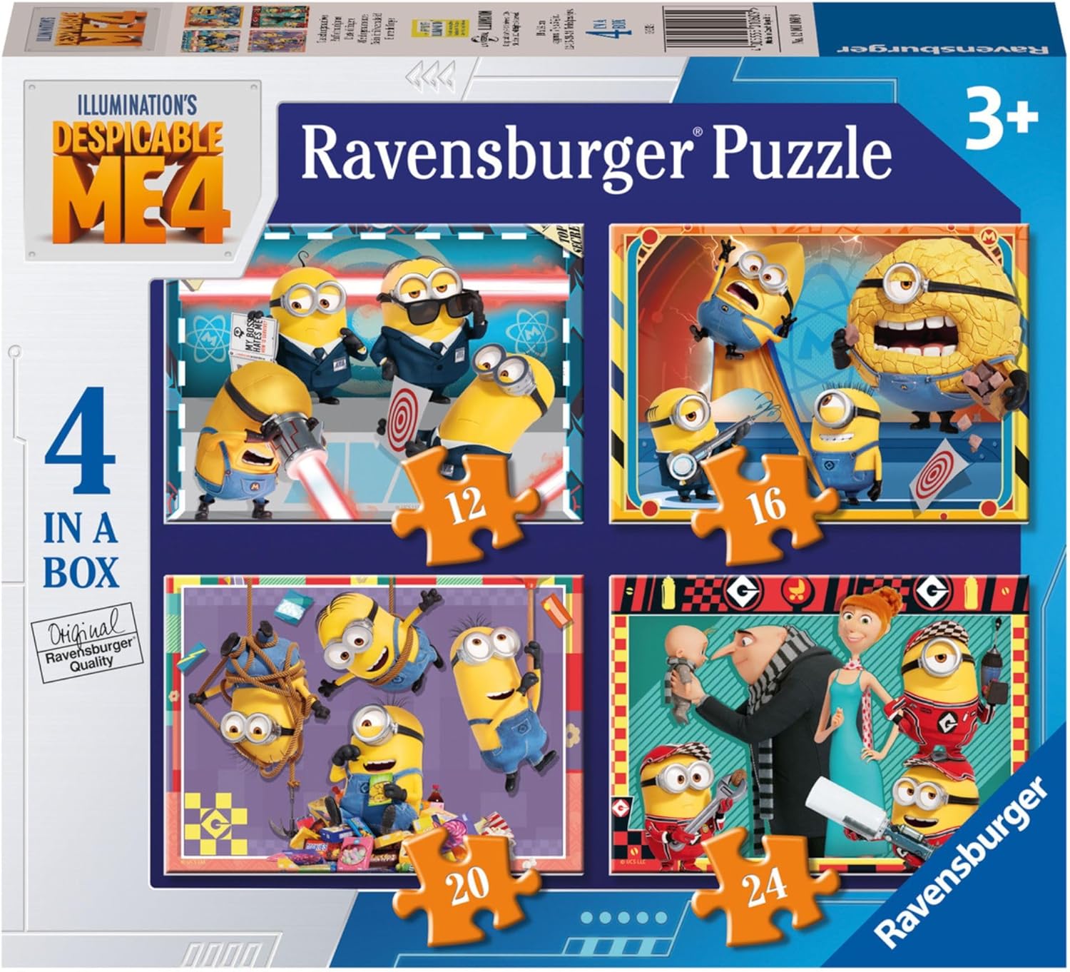 Ravensburger Minions Despicable Me 4 پازل برای کودکان از 3 سال، 4 در یک جعبه (12، 16، 20، 24 قطعه)، فیلم 2024